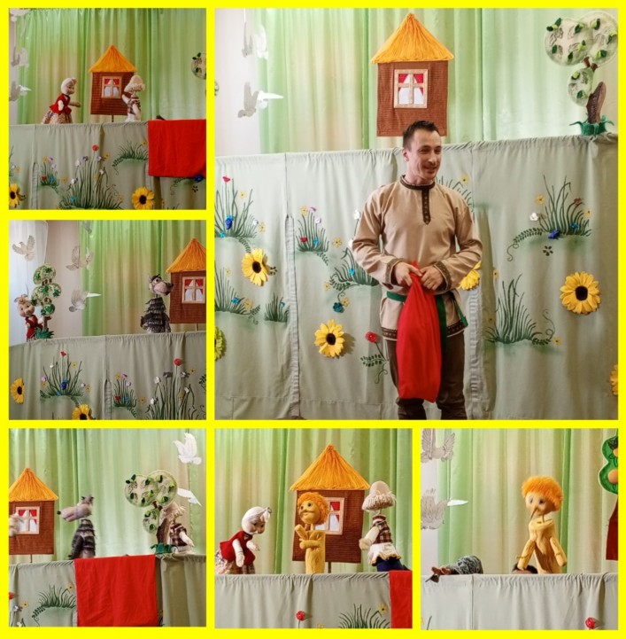 А к нам недавно приезжал Московский театр кукол "Тирлитум" с музыкальным спектаклем "Чучелко". Ребята с удовольствием посмотрели весёлую историю о том, что учиться хорошим делам никогда не поздно. Сказочник оживил своих кукольных героев и показал спектакль про бабушку, дедушку, чучелко, козлика и волка.